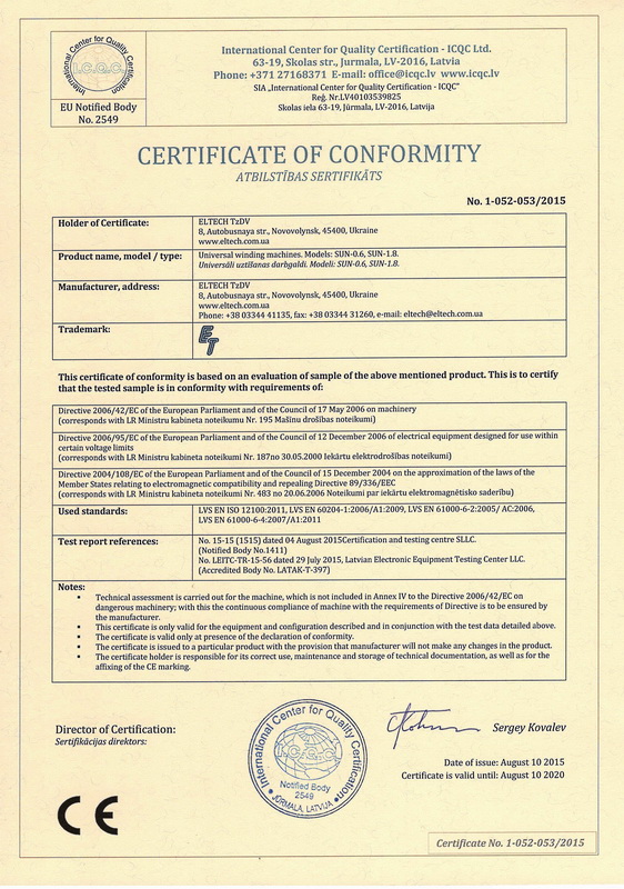 безопасности ЕС. После получения сертификата станки будут маркироваться знаком соответствия СЄ.